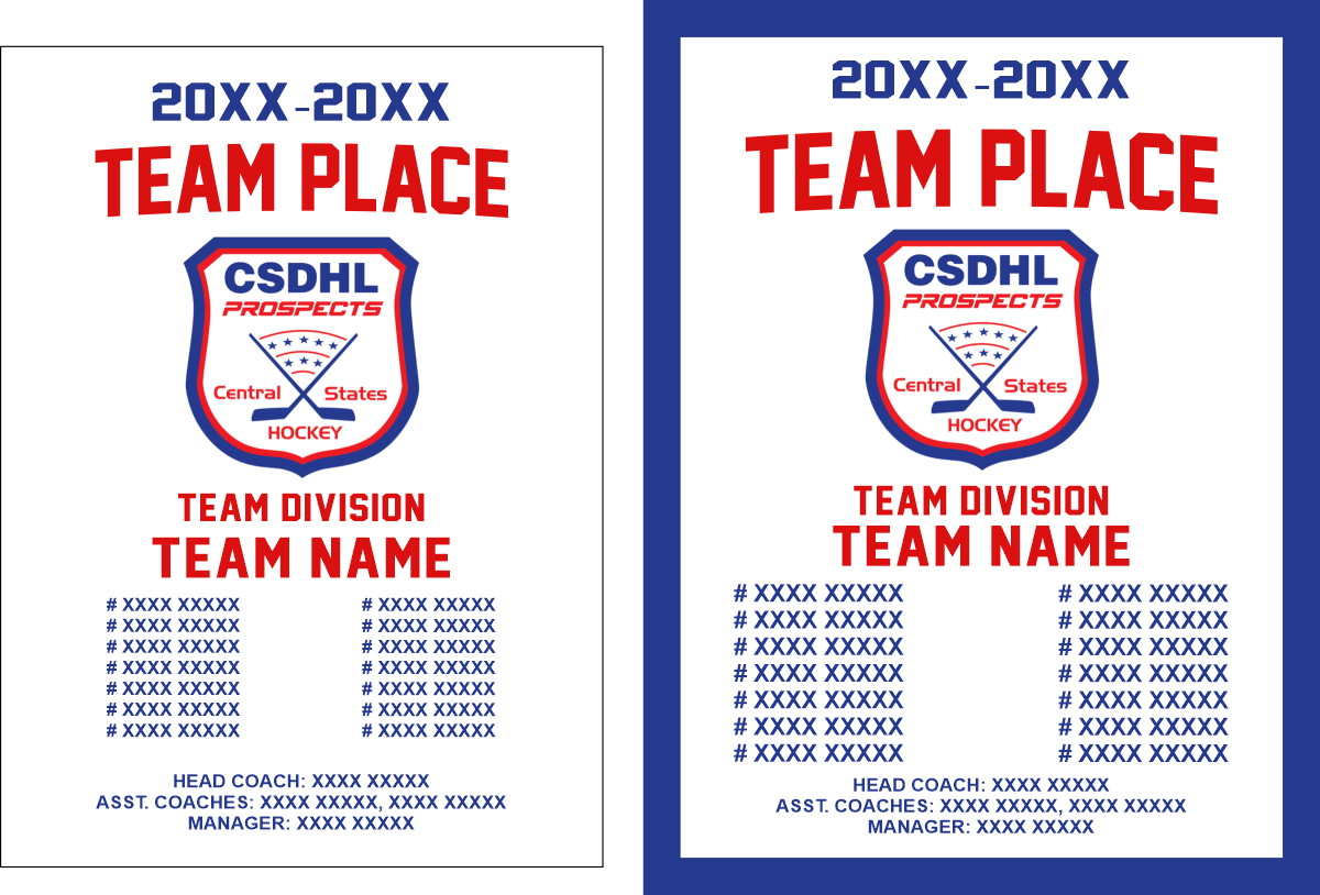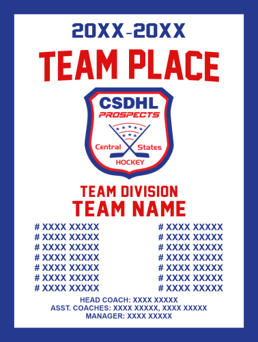 2026 CSDHL PROSPECTS Team Banners-MINIMUM ORDER 8 BANNERS PER ORDER-ANY SIZE